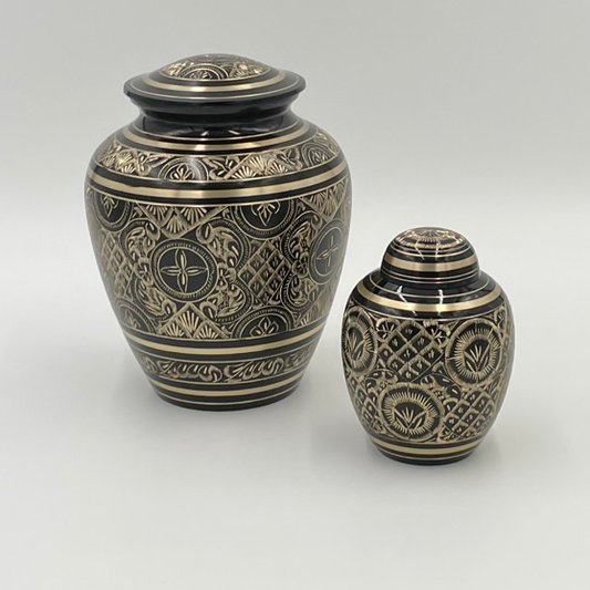 Black and Gold Etched Brass Urn