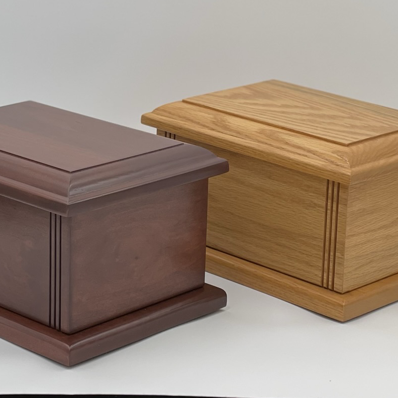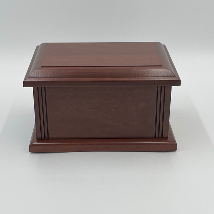 The Tradition is made of solid cherry wood. It is handcrafted in the United States with a water-based finish. It is a classic urn, sturdy enough for burial & beautiful enough for display.